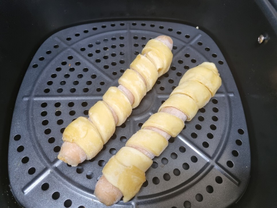 벌써부터 두근두근 패스츄리 핫도그2개를 넣어서 조리 시작합니다.